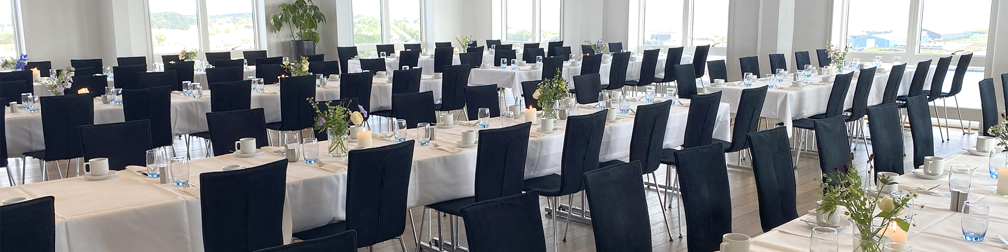 Prisen er inkl. bordopdækning med blomster og lys, vand på bordene og betjening på dagen. Der er muligt at tilkøbe øl, sodavand, vin mm.